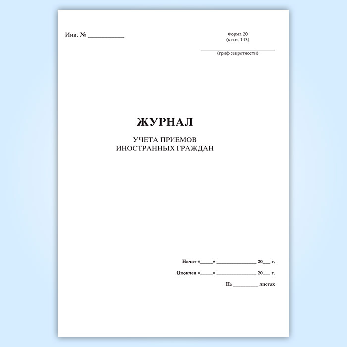 Журнал учета приемов иностранных граждан (форма 20) в Щёлково купить