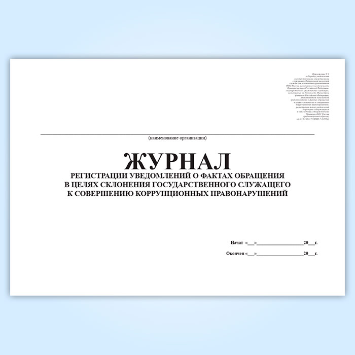 Журнал регистрации уведомлений о фактах обращения в целях склонения государственного служащего к совершению коррупционных правонарушений в Щёлково купить