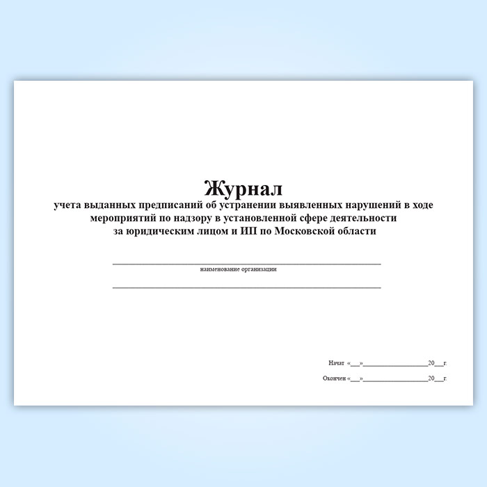 Журнал учета выданных предписаний об устранении выявленных нарушений в ходе мероприятий по надзору в установленной сфере деятельности за юридическим лицом и ИП по Московской области в Щёлково купить