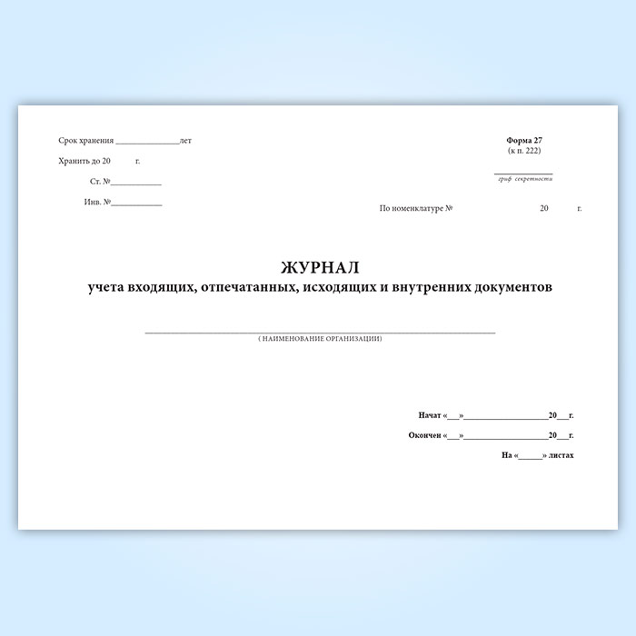 Журнал учета входящих, отпечатанных, исходящих и внутренних документов (горизонтальный) в Щёлково купить