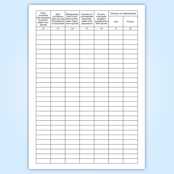 Журнал учета шифртелеграмм, переданных на постоянное хранение в секретный орган в Щёлково купить