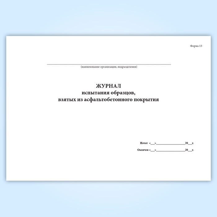 Журнал испытания образцов, взятых из асфальтобетонного покрытия (форма 13) в Щёлково купить