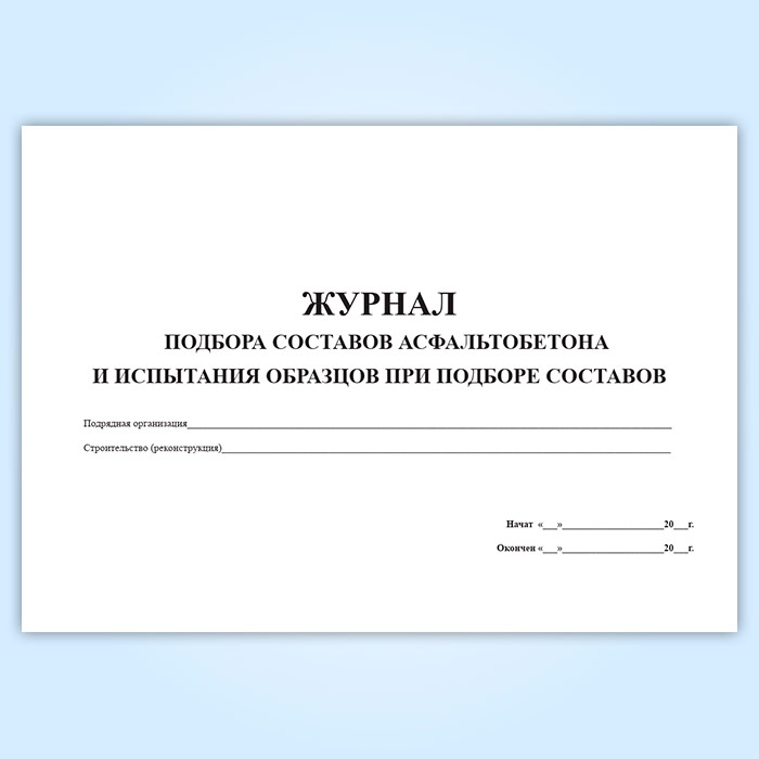 Журнал подбора составов асфальтобетона и испытания образцов при подборе составов в Щёлково купить