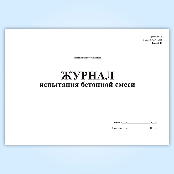 Журнал испытания бетонной смеси (форма № Д-24) в Щёлково купить