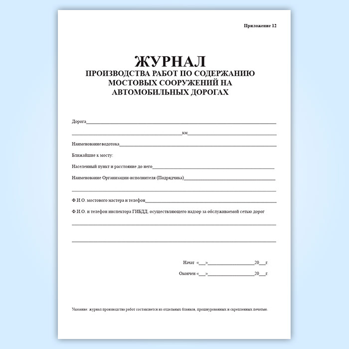 Журнал производства работ по содержанию мостовых сооружений на региональных автомобильных дорогах в Щёлково купить
