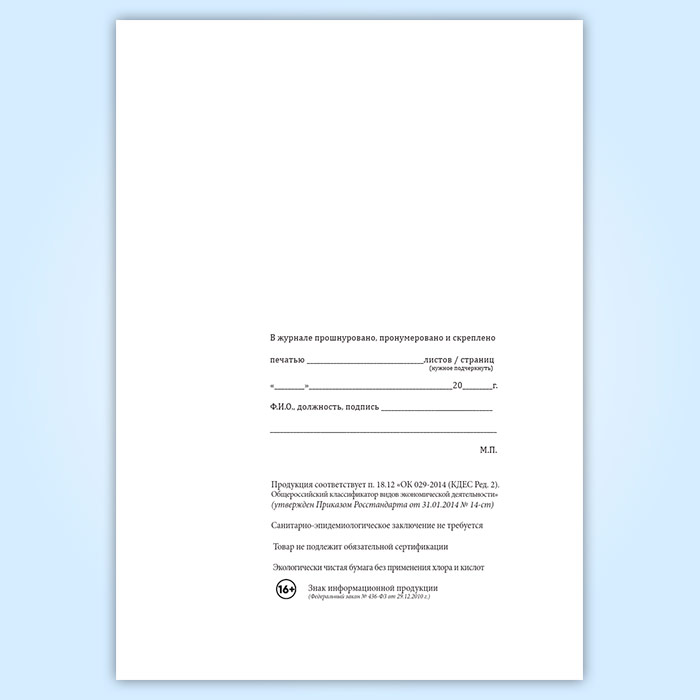 Вы получаете печатную продукцию прошнурованной и c местом для вашей печати в соответствии с действующими нормативными документами: