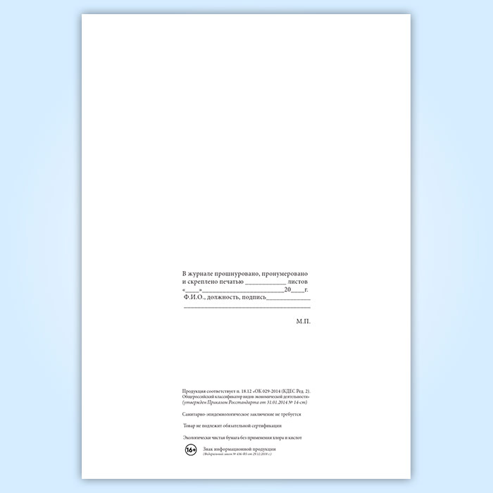 Вы получаете печатную продукцию прошнурованной и c местом для вашей печати в соответствии с действующими нормативными документами: