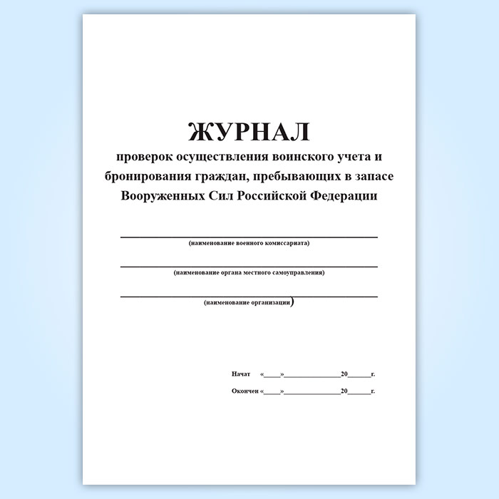 Журнал проверок осуществления воинского учета и бронирования граждан, пребывающих в запасе Вооруженных Сил Российской Федерации в Щёлково купить