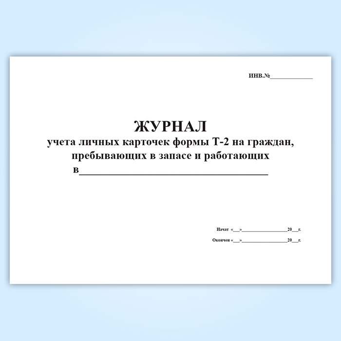 Журнал учета личных карточек формы Т-2 на граждан, пребывающих в запасе и работающих в Щёлково купить