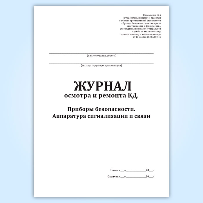 Журнал осмотра и ремонта канатной дороги. Приборы безопасности. Аппаратура сигнализации и связи (форма № 9) в Щёлково купить