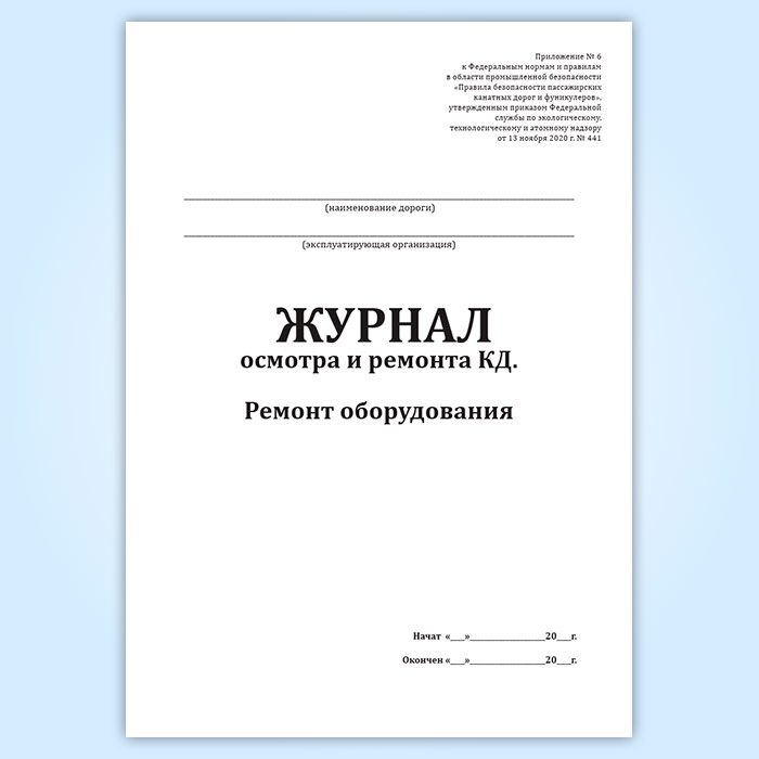 Журнал осмотра и ремонта канатной дороги. Ремонт оборудования (форма № 10) в Щёлково купить