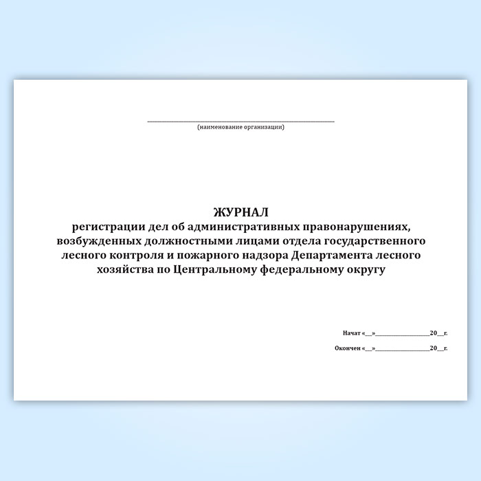 Журнал регистрации дел об административных правонарушениях, возбужденных должностными лицами отдела государственного лесного контроля и пожарного надзора Департамента лесного хозяйства по Центральному федеральному округу в Щёлково купить