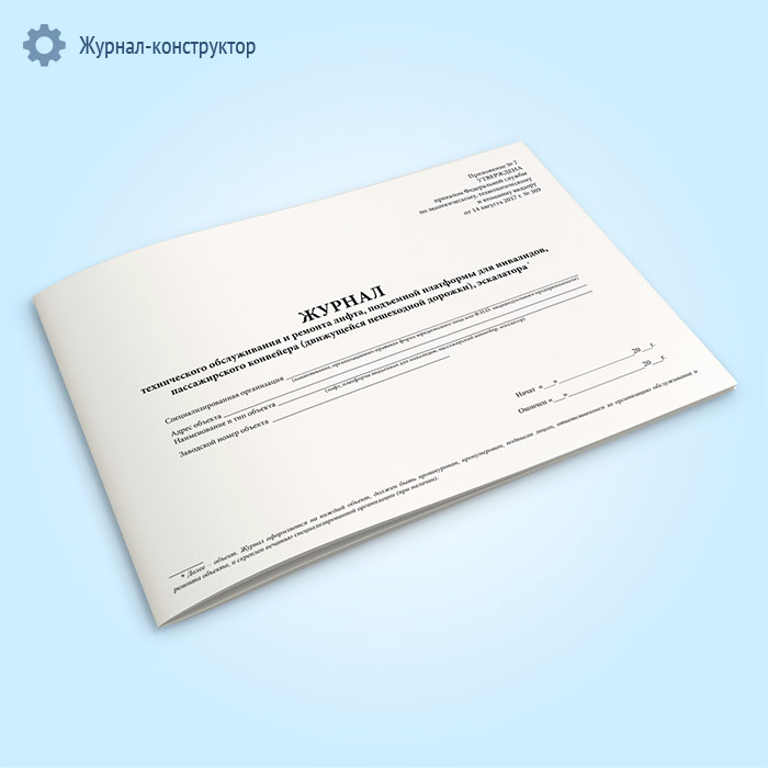 Журнал технического обслуживания и ремонта лифта, подъемной платформы для инвалидов, пассажирского конвейера (движущейся пешеходной дорожки), эскалатора в Щёлково купить
