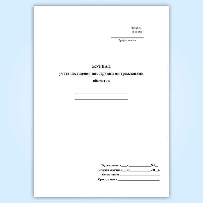 Журнал учета посещения иностранными гражданами объектов (форма 21) в Щёлково купить