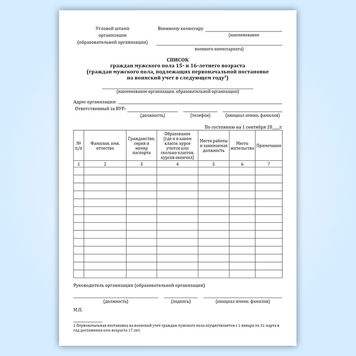 Журнал списков граждан мужского пола 15- и 16-летнего возраста (граждан мужского пола, подлежащих первоначальной постановке на воинский учет в следующем году) в Щёлково купить