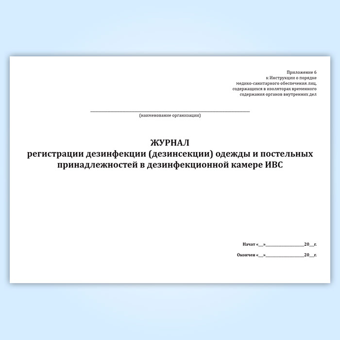 Журнал регистрации дезинфекции (дезинсекции) одежды и постельных принадлежностей в дезинфекционной камере ИВС в Щёлково купить