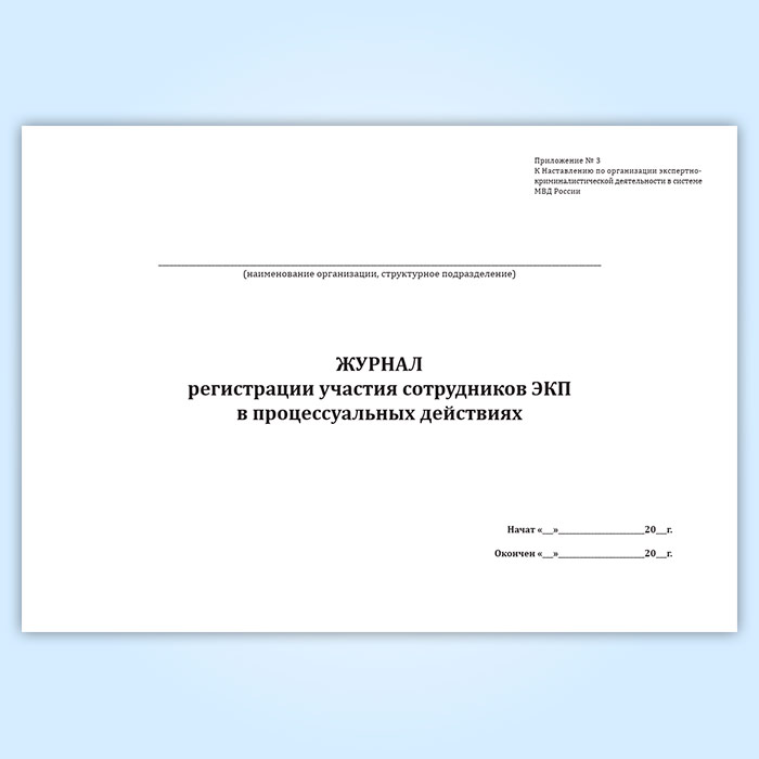 Журнал регистрации участия сотрудников ЭКП в процессуальных действиях в Щёлково купить