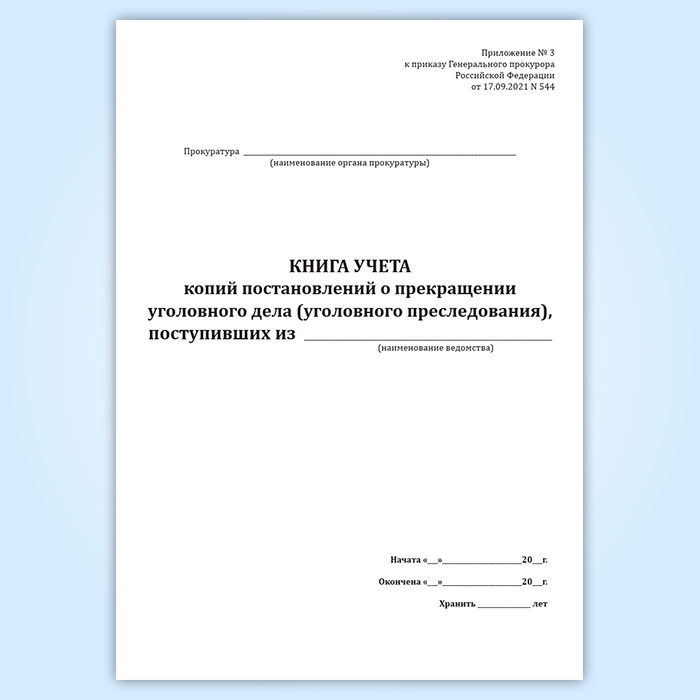 Книга учета копий постановлений о прекращении уголовного дела (уголовного преследования) в Щёлково купить