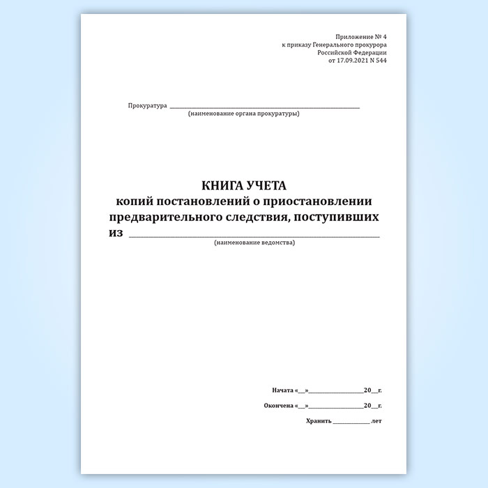 Книга учета копий постановлений о приостановлении предварительного следствия в Щёлково купить