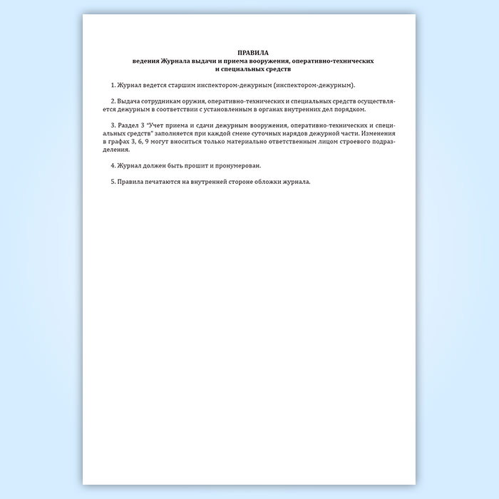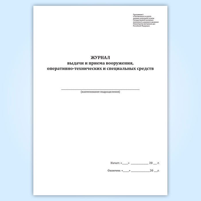Журнал выдачи и приема вооружения, оперативно-технических и специальных средств в Щёлково купить