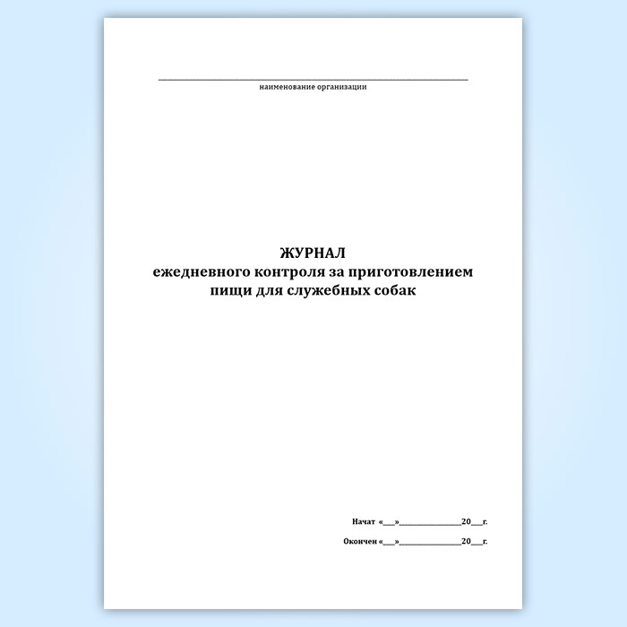 Журнал ежедневного контроля за приготовлением пищи для служебных собак в Щёлково купить