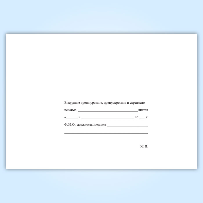 Вы получаете печатную продукцию прошнурованной и c местом для вашей печати в соответствии с действующими нормативными документами: