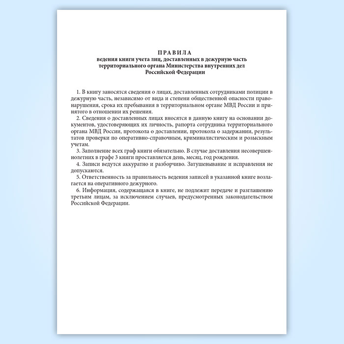 Книга учета лиц, доставленных в дежурную часть территориального органа МВД РФ в Щёлково купить