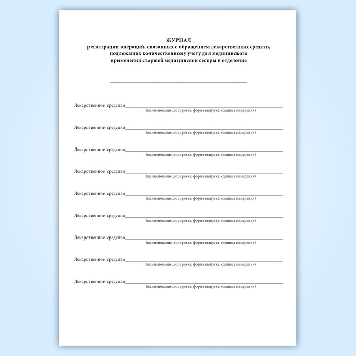 Журнал регистрации операций, связанных с обращением лекарственных средств, подлежащих количественному учету для медицинского применения старшей медицинской сестры в отделение в Щёлково купить