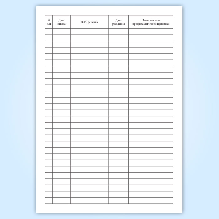 Журнал регистрации отказов от профилактических прививок в Щёлково купить