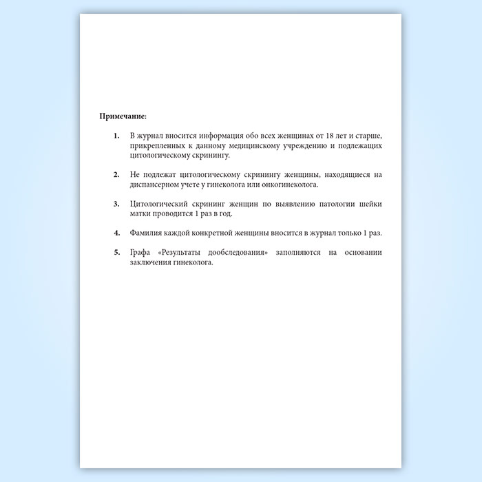 Журнал учета цитологического скрининга женщин по выявлению патологии шейки матки в Щёлково купить