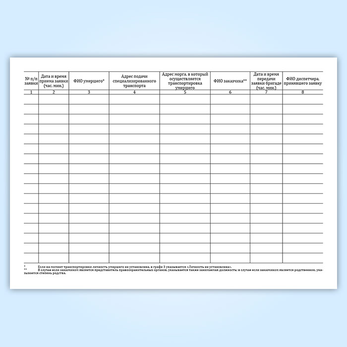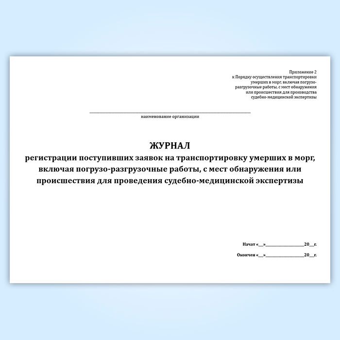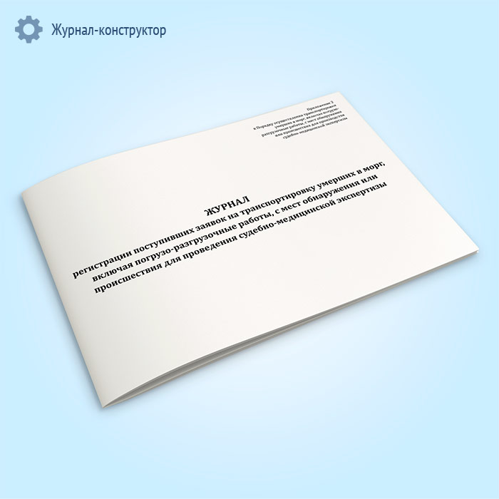 Журнал регистрации поступивших заявок на транспортировку умерших в морг, включая погрузо-разгрузочные работы, с мест обнаружения или происшествия для проведения судебно-медицинской экспертизы в Щёлково купить