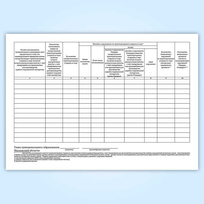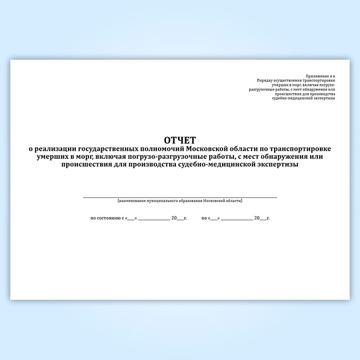 Отчет о реализации государственных полномочий Московской области по транспортировке умерших в морг, включая погрузо-разгрузочные работы, с мест обнаружения или происшествия для производства судебно-медицинской экспертизы в Щёлково купить