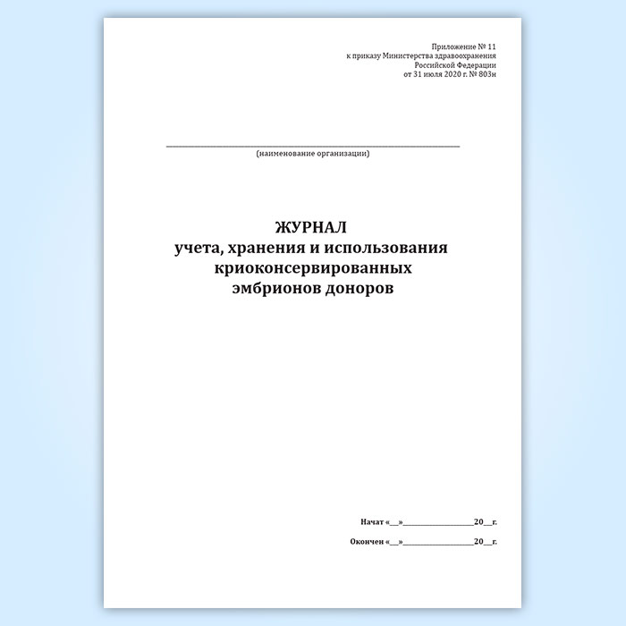 Журнал учета, хранения и использования криоконсервированных эмбрионов доноров в Щёлково купить