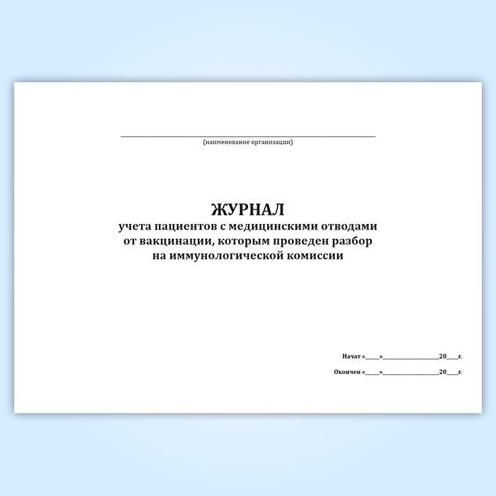 Журнал учета пациентов с медицинскими отводами от вакцинации, которым проведен разбор на иммунологической комиссии в Щёлково купить