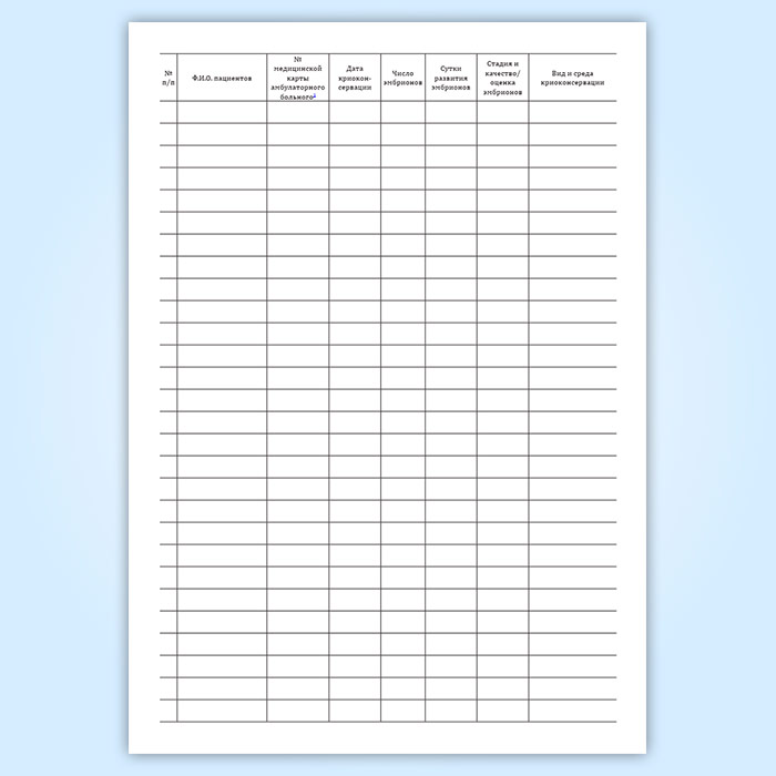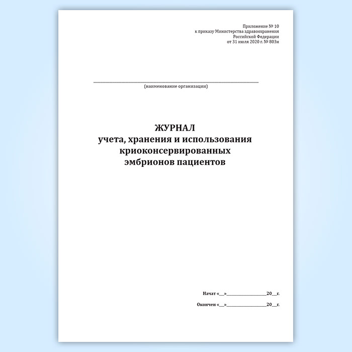 Журнал учета, хранения и использования криоконсервированных эмбрионов пациентов в Щёлково купить