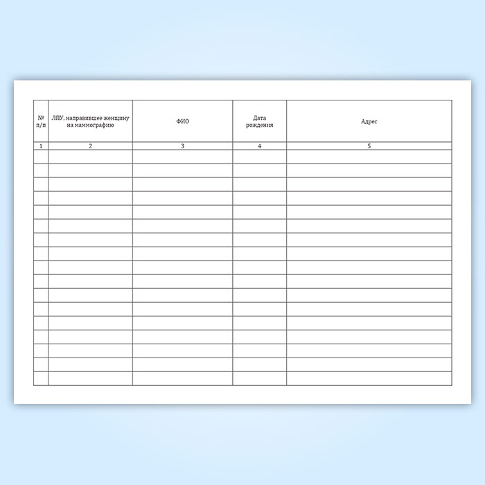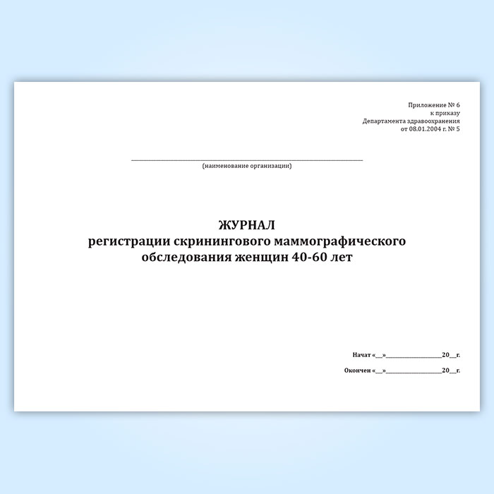 Журнал регистрации скринингового маммографического обследования женщин 40-60 лет в Щёлково купить