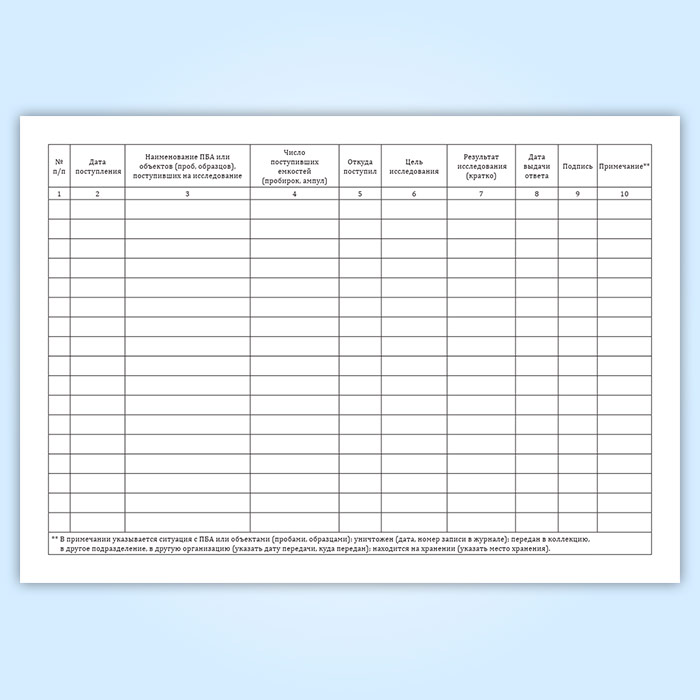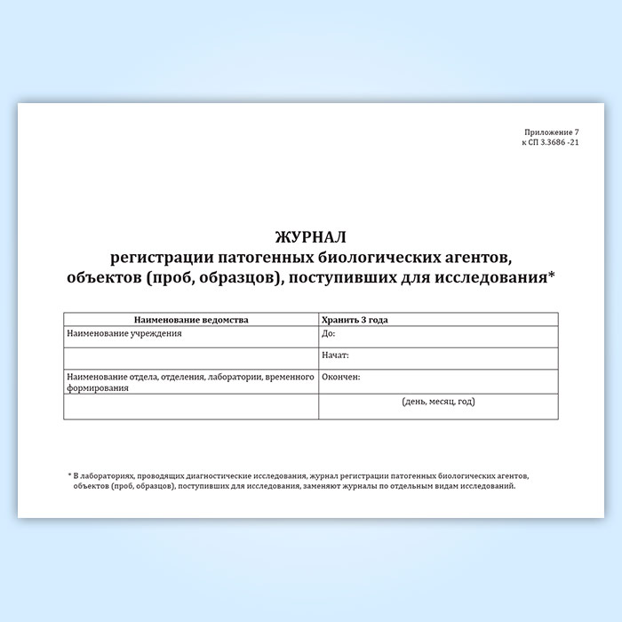 Журнал регистрации патогенных биологических агентов, объектов (проб, образцов), поступивших для исследования в Щёлково купить