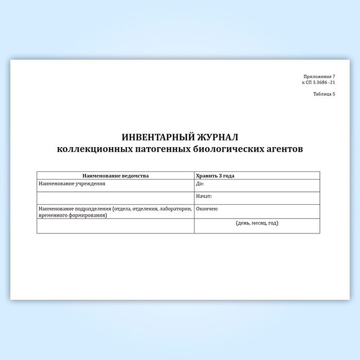 Инвентарный журнал коллекционных патогенных биологических агентов (СанПиН 3.3686-21) в Щёлково купить