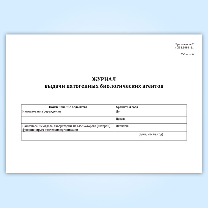 Журнал выдачи патогенных биологических агентов (СанПиН 3.3686-21) в Щёлково купить