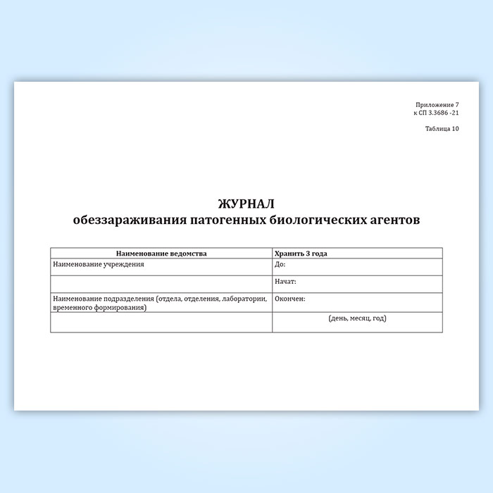 Журнал обеззараживания патогенных биологических агентов (СанПиН 3.3686-21) в Щёлково купить