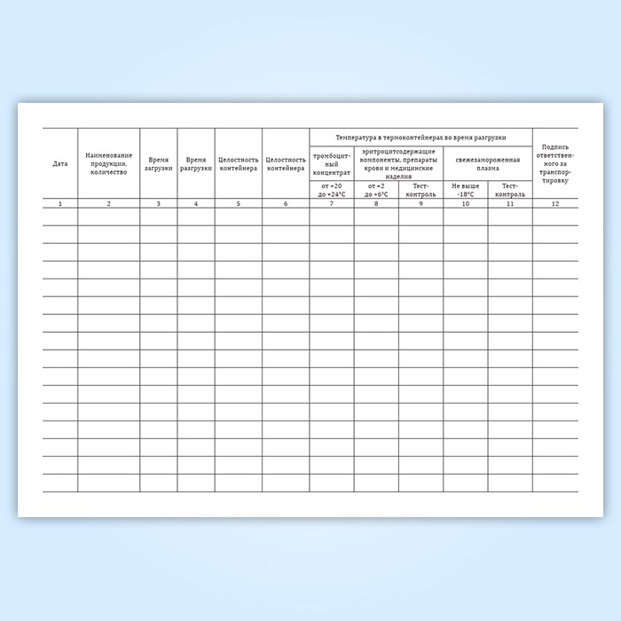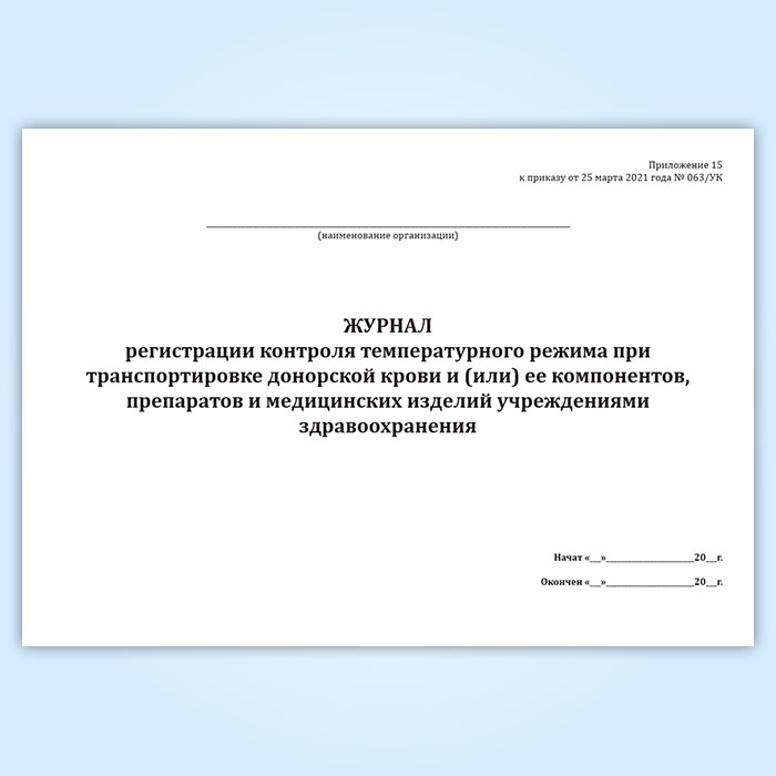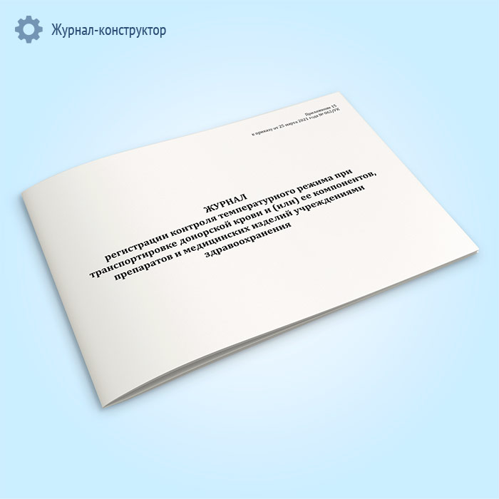 Журнал регистрации контроля температурного режима при транспортировке донорской крови и (или) ее компонентов, препаратов и медицинских изделий учреждениями здравоохранения в Щёлково купить