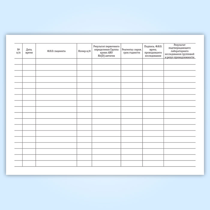 Журнал регистрации первичного определения группы крови в Щёлково купить