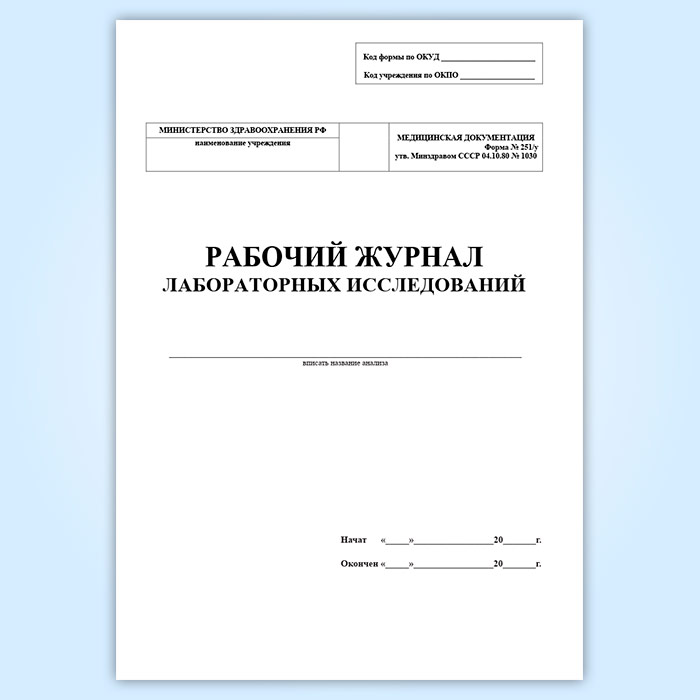 Рабочий журнал лабораторных исследований (форма 251/у) в Щёлково купить