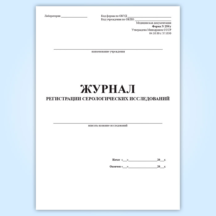 Журнал регистрации серологических исследований (форма 259/у) в Щёлково купить