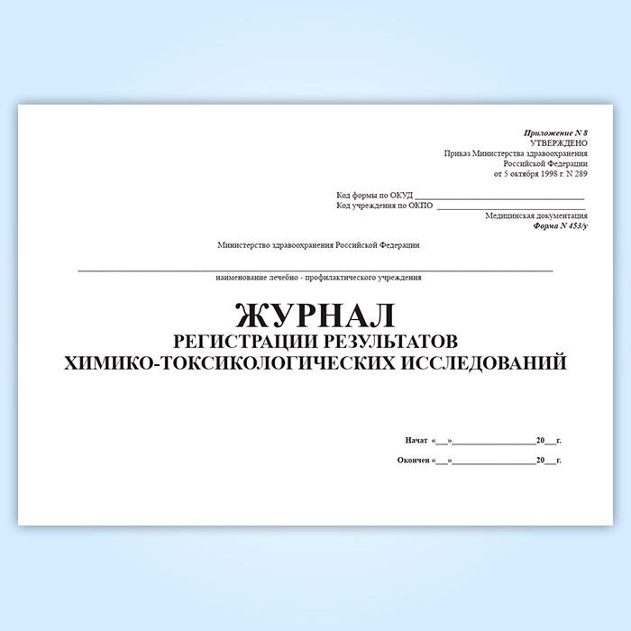 Журнал регистрации результатов химико-токсикологических исследований (форма 453у-06) в Щёлково купить