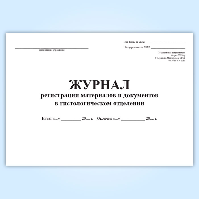 Журнал регистрации материалов и документов в гистологическом отделении (форма 190/у) в Щёлково купить