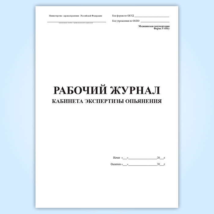 Рабочий журнал кабинета экспертизы опьянения (форма 450у) в Щёлково купить