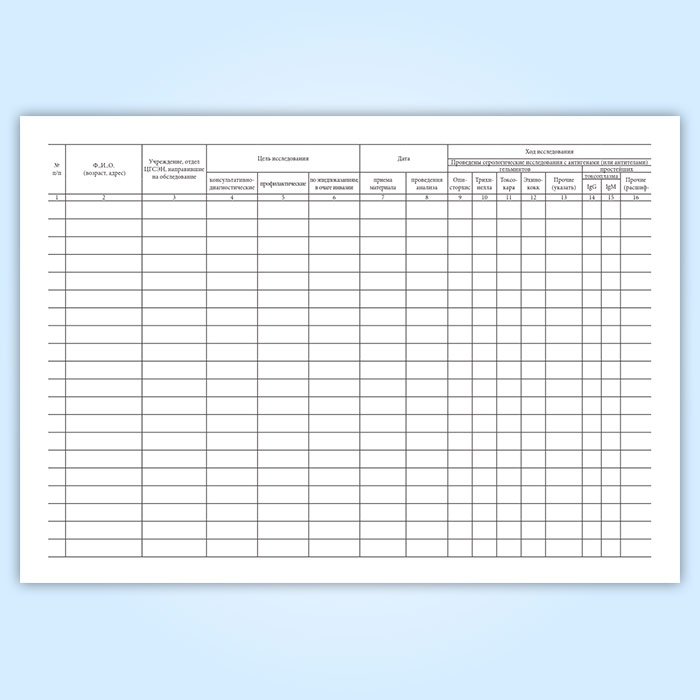 Журнал учета серологических исследований на паразитарные заболевания в Щёлково купить