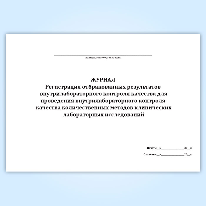 Журнал «Регистрация отбракованных результатов внутрилабораторного контроля качества для проведения внутрилабораторного контроля качества количественных методов клинических лабораторных исследований» в Щёлково купить