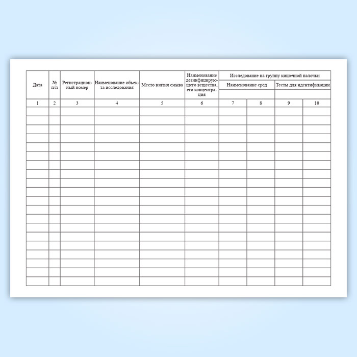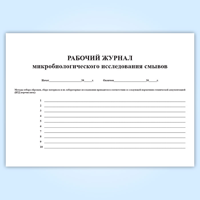 Рабочий журнал микробиологического исследования смывов (форма № 381у) в Щёлково купить